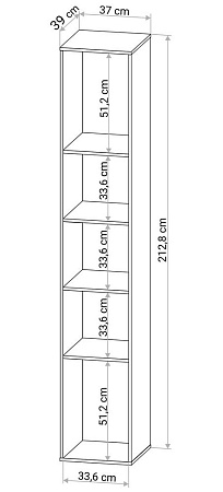 Высокий узкий стеллаж для книг СТ-211, цвет Дуб Санома. Полки открытые, 5 ячеек. Габариты стеллажа 2128х370х390 мм (ВхШхГ). Подходит для хранения книг, документов или для элементов декора. Можно использовать для зонирования комнаты. Ячейки разного размера расширяют функционал стеллажа.