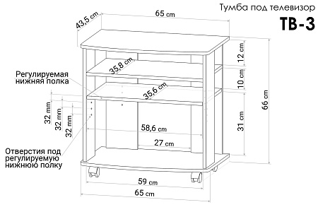 Изготавливается из качественного ЛДСП 16 мм, края покрыты кромкой ПВХ. Поставляется в разобранном виде. Ширина полок составляет 590 мм.