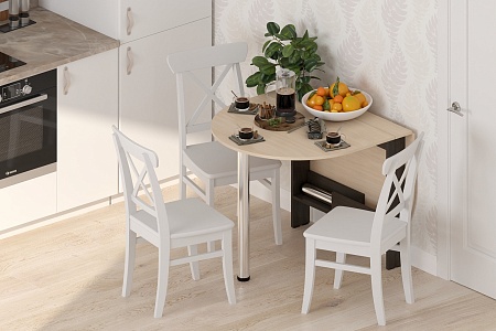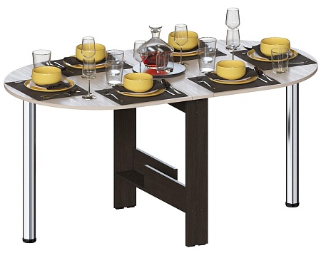 Очень удобный овальный стол-книжка для малогабаритных комнат, будь то кухня или гостиная. Актуальный молочный цвет в сочетании с черный подойдет под любой интерьер. Овальная форма экономит место в комнате, но в то же время размер стола достаточный для комфортного размещения минимум 4-х человек. Каждая сторона откидной столешницы опирается на 1 хромированную ножку, что позволяет быстро собрать стол, а возможность регулировки высоты ножек обеспечивает отличную устойчивость. Ножки диаметром 60 мм.