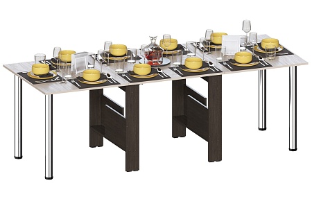 Большой стол-книжка с раздвижной центральной секцией. Благодаря ширине 223 см в разложенном виде, за столом могут комфортно разместиться 12 человек. За счет хромированных ножек стол эффектно смотрится и устойчив, т.к. с каждого края предусмотрено 2 ножки с надежным металлическим креплением и регулировкой ножек по высоте.