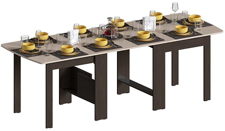Большой стол книжка длиной 240 см поможет разместить любую компанию за праздничным столом! Такие размеры достигаются за счет раздвижной центральной секции стола. А при необходимости его можно уменьшить до 181 см в длину, равной традиционным размерам столов-книжек. И конечно же его можно сложить для хранения, причем несмотря на свои большие размеры, стол в сложенном виде займет всего лишь 34 см в ширину.